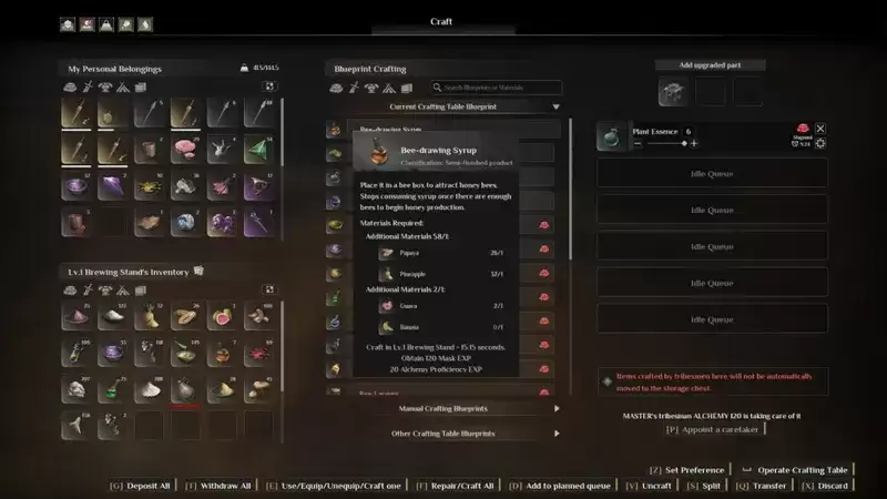 在《灵魂面甲》的世界里,探索与收获总是充满惊喜。这不,当你成功捕获一些猴子,收获了香蕉和菠萝之后,一个新的制造选项就解锁了——蜜蜂绘画糖浆。这可不是普通的糖浆,它是你建立并维持蜂巢运作的绝对核心。