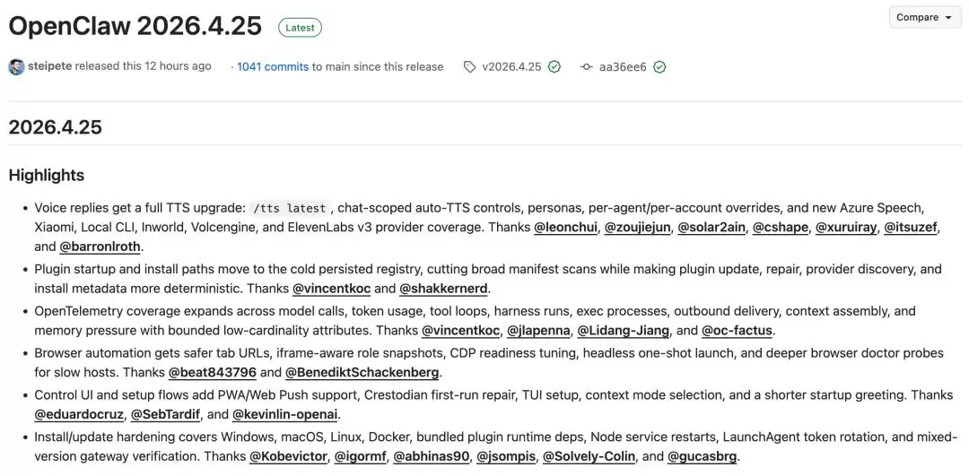 4月25日,OpenClaw发布了v2026.4.25版本。这次更新,有点不一样。