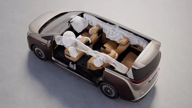 安全,始终是豪华车的基石。第二代D9构建了一套完整的主动安全体系,包括自动紧急制动(AEB)、紧急转向辅助(AES)和紧急避让辅助(ESA)等功能。针对高速爆胎和强横风等极端情况,车辆的稳定性控制能力也进行了专项强化。在被动安全方面,全车标配多个安全气囊及覆盖至第三排的长侧气帘,为每一位乘员提供周全防护。