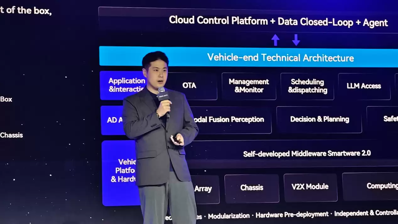 参数亮眼的背后,是更为扎实的技术底座。斑陌易行自研的Smartware2.0中间件,构建了一套乐高式的模块化软硬件架构。统一接口、预埋硬件、按需组合——这种设计思路直接带来了开箱即用、快速部署、易于扩展和维护的显著优势,让“即刻落地”不再是口号。而在算法层面,基于NVIDIA Alpamayo 1.5开源基座构建的SmartVLA大模型,首次在Jetson Thor平台上完成了无人物流车的部署。这赋予了车辆真正的场景理解与自主决策能力,让自动驾驶变得更安全、更智能。