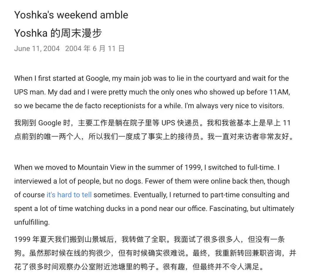 他们甚至为公司养的第一条狗Yoshka撰写“员工观察日志”。(这大概是最早的“宠物福利”文化了。)