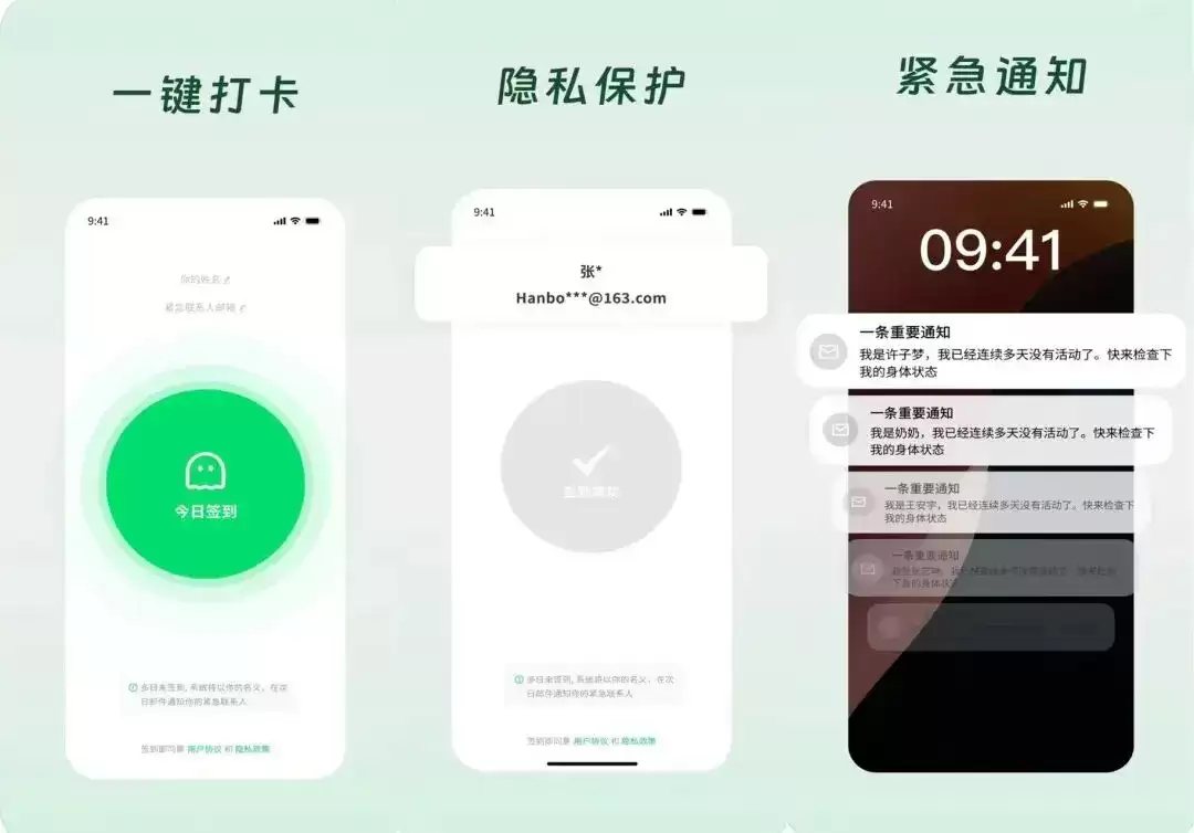 它的核心功能简单到令人意外:用户填写紧急联系人邮箱,每天签到打卡,以此证明自己“健在”。一旦连续两天没有操作,系统便会自动发送邮件通知联系人。说白了,这就是一个为独居者设计的“数字安全绳”。