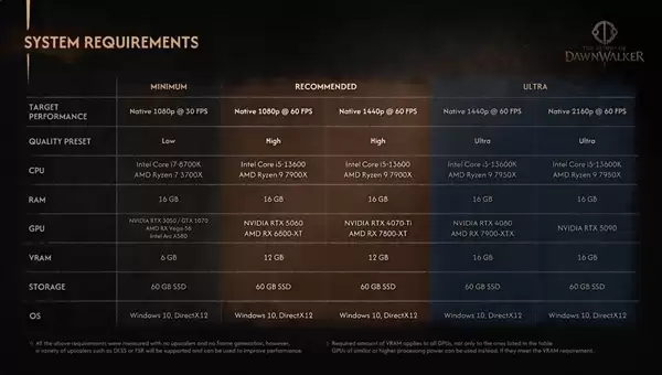 对于追求极致视觉效果的玩家,配置要求分为两档。在2K分辨率下开启超高画质并稳定60帧,RTX 4080或RX 7900 XTX是推荐选择。而真正的“天花板”配置,指向了4K/60帧的极致预设——它直接推荐了尚未正式发布的RTX 5090显卡,并需搭配酷睿i5-13600K或锐龙9 7950X处理器及16GB显存。值得注意的是,以上所有配置要求均基于原生分辨率渲染,并未开启任何超分辨率技术。好消息是,游戏已确认将支持NVIDIA DLSS和AMD FSR,开启后显卡负载有望得到显著缓解。