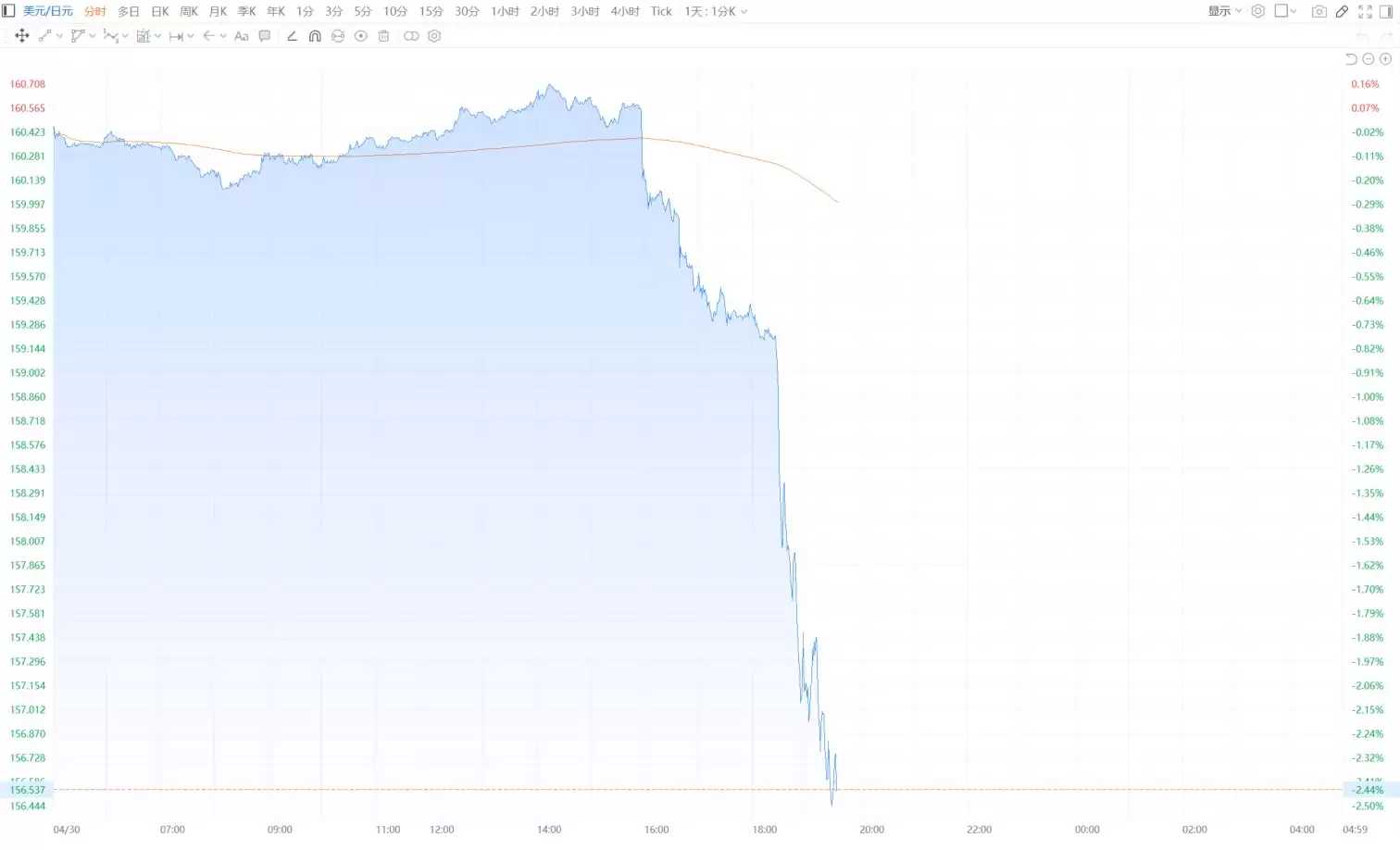 市场今天上演了一出大戏。你猜怎么着?美元兑日元的汇率,就像坐上了滑梯,一路向下,日内跌幅直接拉到了2.50%。这个数字一出来,交易员们的神经恐怕都绷紧了。截至发稿,汇率已经来到了156.37附近。