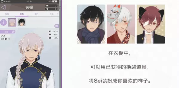 既然是一款模拟游戏,你就可以将Sei装扮成自己喜欢的模样,换装衣橱的玩法,精准定位了受众的喜好。只不过这次不是养女儿了,是打扮帅管家。通过改变头饰、发型、眼瞳、时装等细节,就能让你的Sei与众不同,优雅的绅士、帅气的正太、风度翩翩的王子……哪套时装最对你的胃口呢?